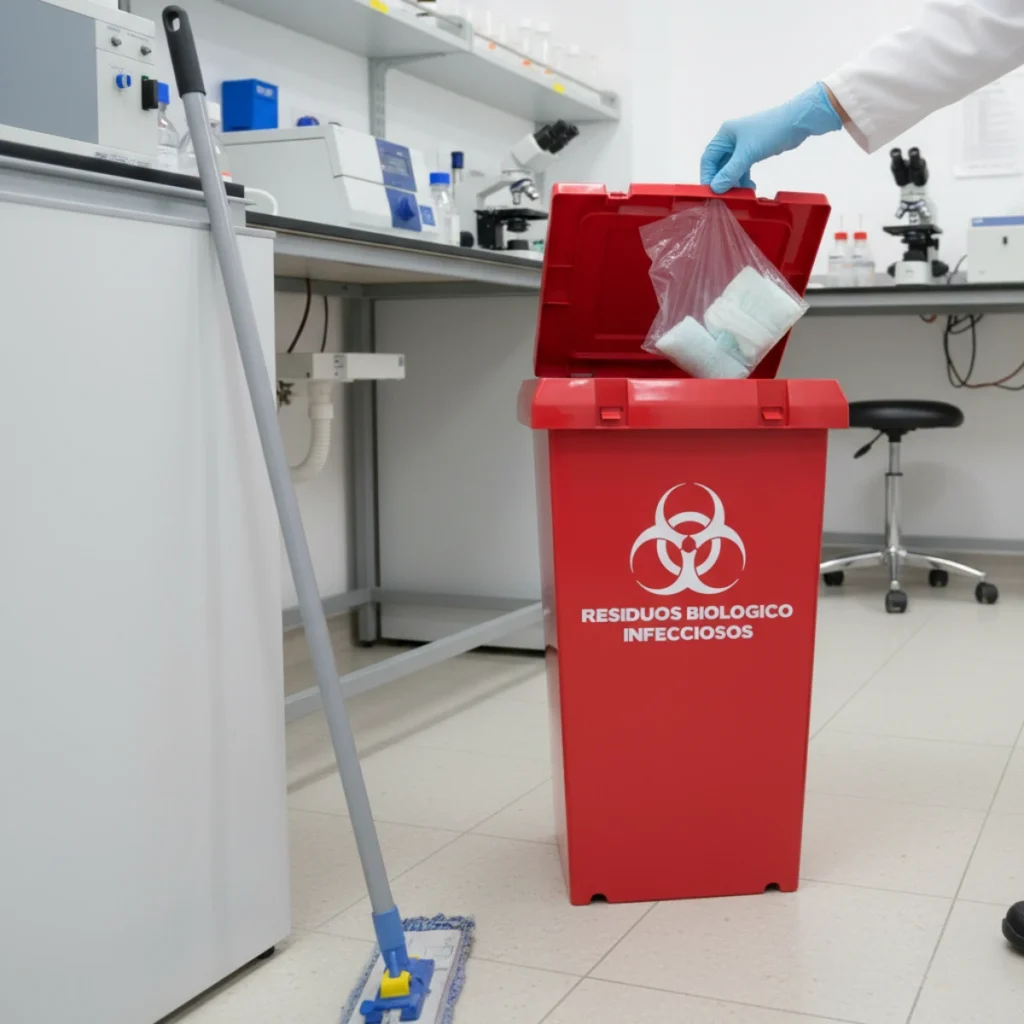 Se almacenan desechos como jeringas, vendas con sangre, materiales contaminados con fluidos corporales y otros elementos que pueden transmitir enfermedades.