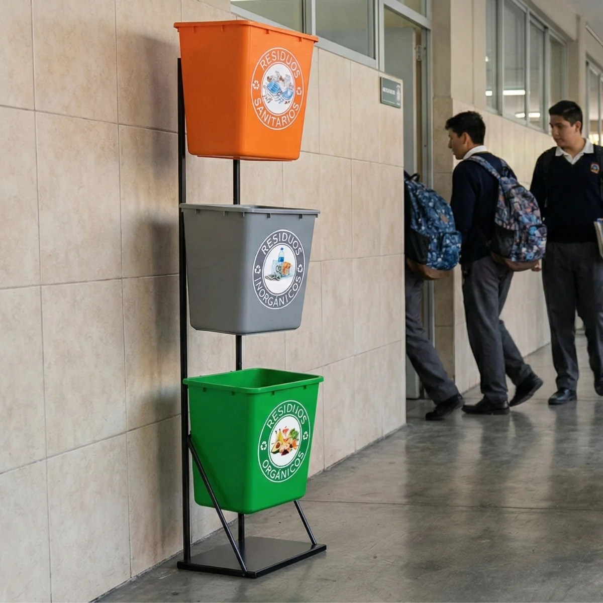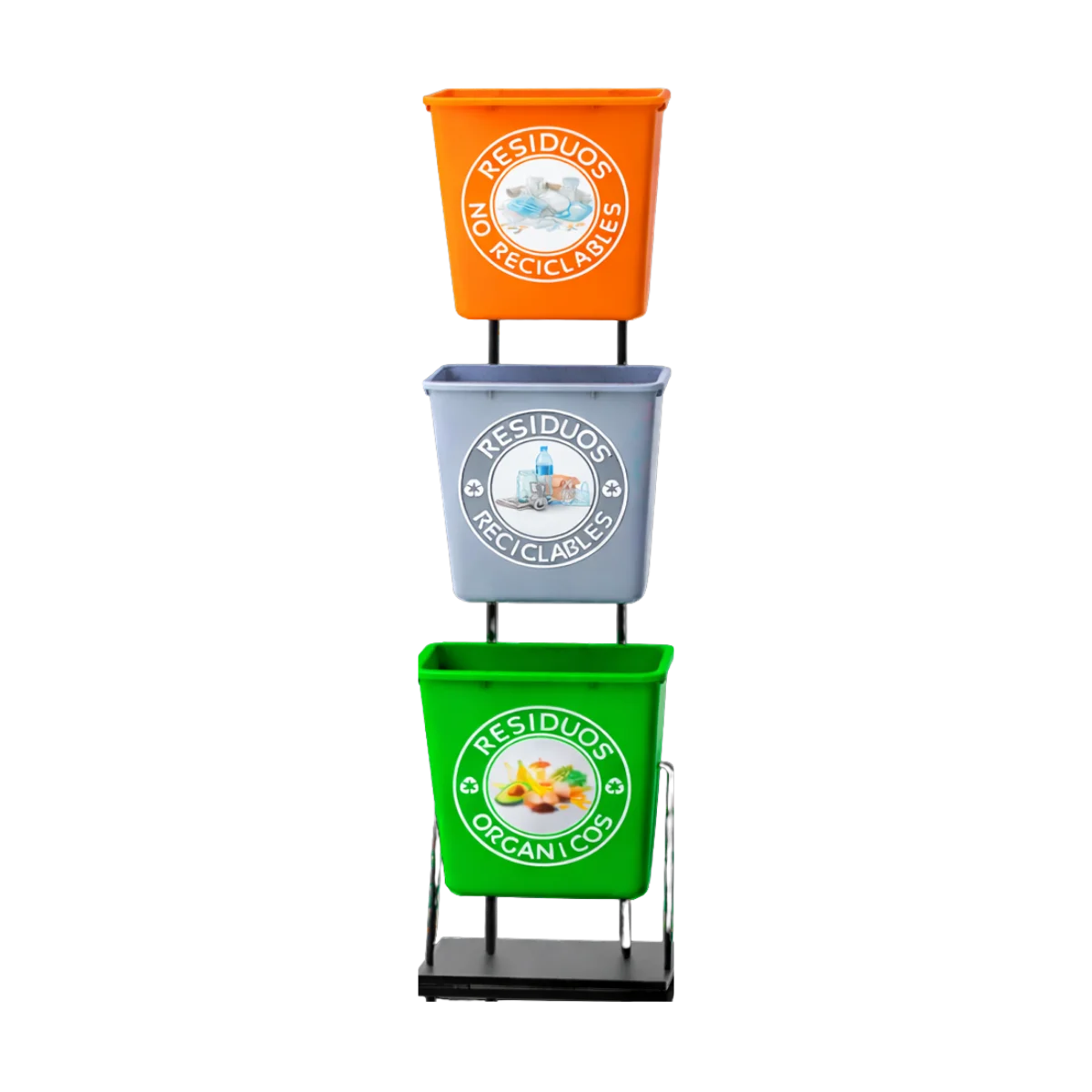 Estas estaciones de reciclaje son ideales para oficinas y escuelas con espacios reducidos, se pueden acompañar con bolsas de plástico para acelerar el proceso de reciclaje.