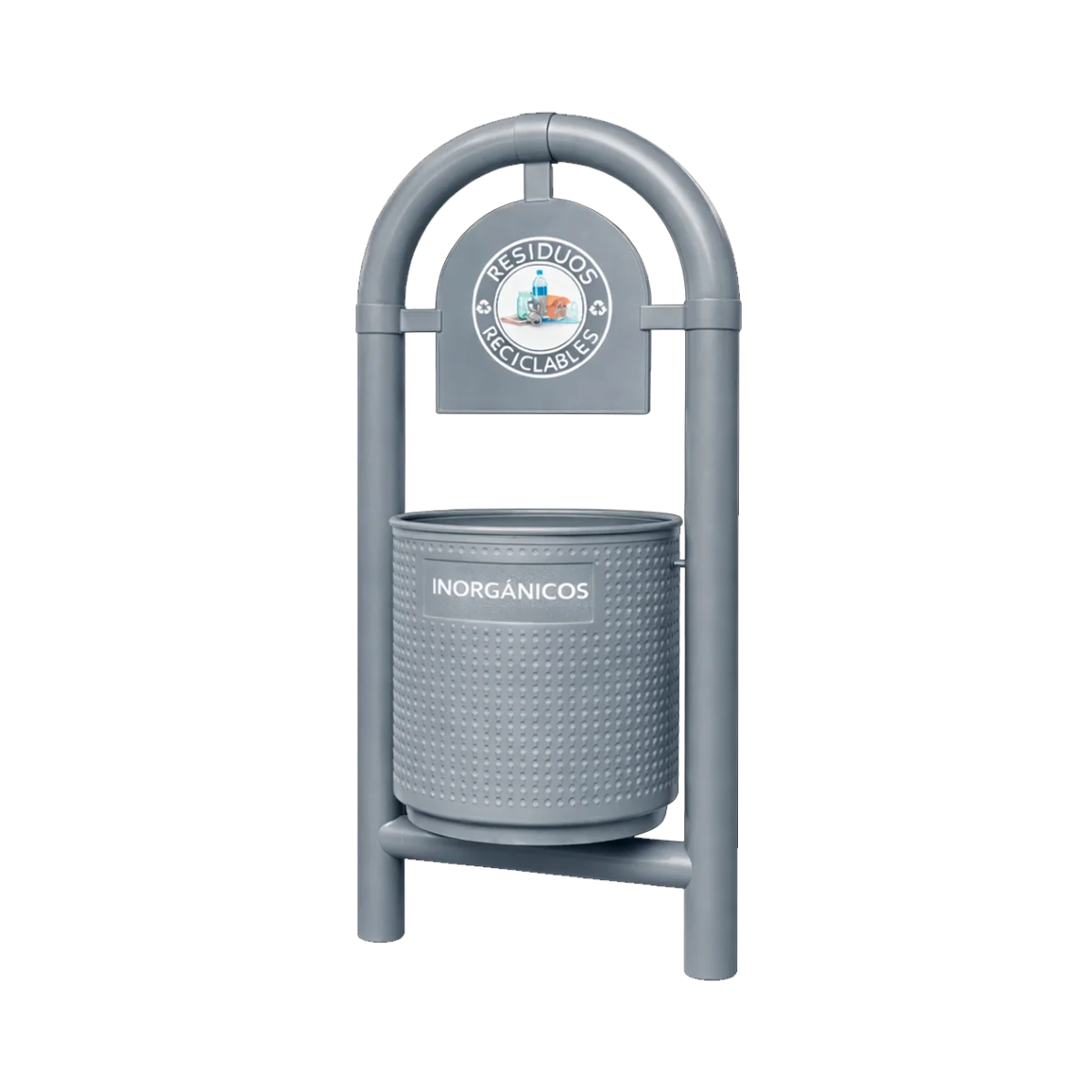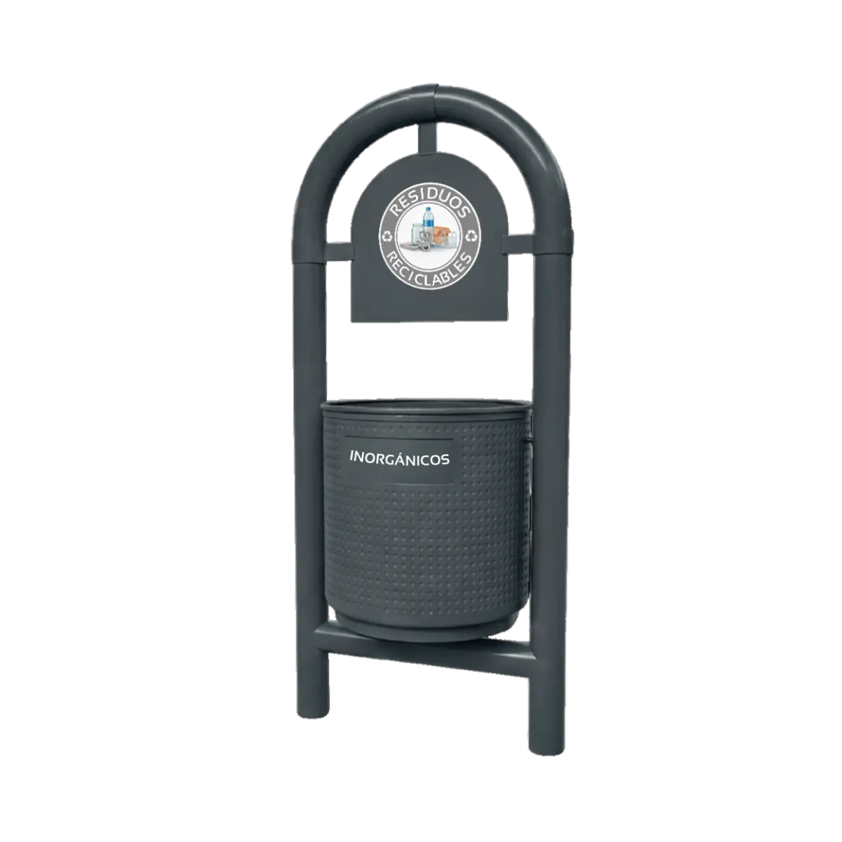 Además de su resistencia, la caneca de basura para parques con estructura tubular arqueada es muy funcional, ya que su diseño permite que se puedan depositar grandes cantidades de residuos en su interior.