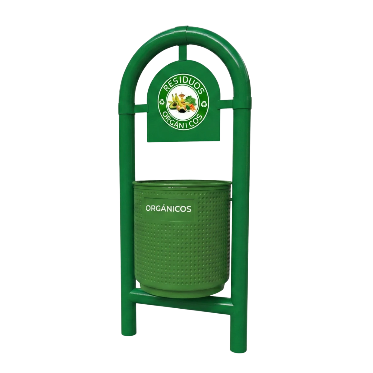 La caneca de basura para parques con espacio para letrero o anuncio y estructura tubular arqueada es una excelente opción para mantener limpios y ordenados los espacios públicos.