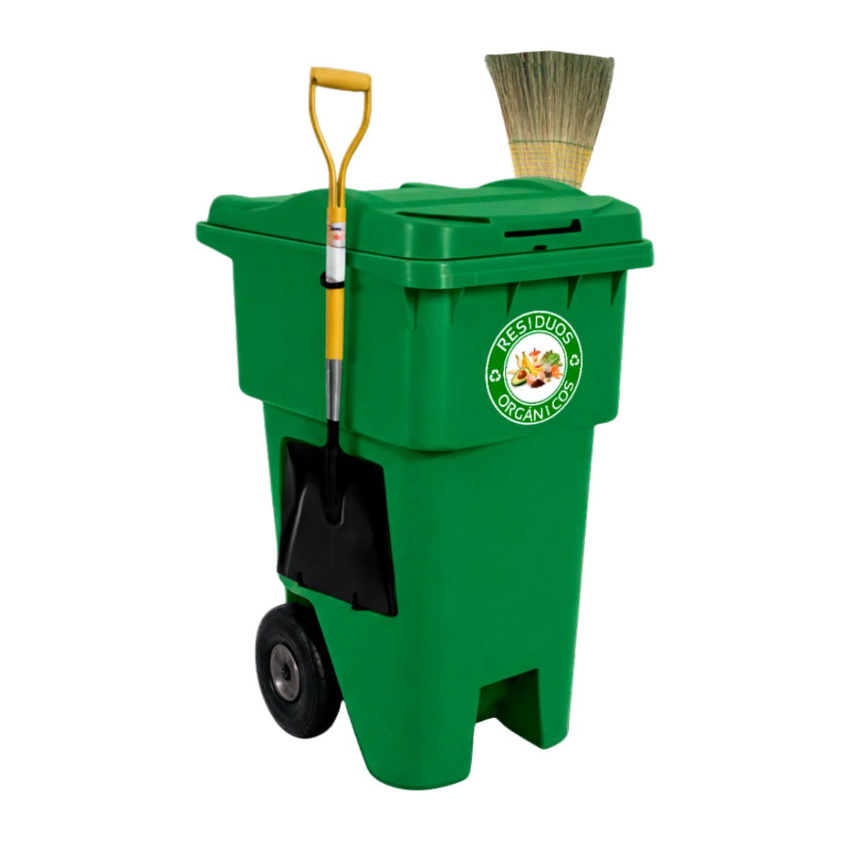Su uso es simple: mientras se realiza el barrido, los residuos se depositan directamente en el contenedor, manteniendo el área limpia sin acumulaciones temporales. El carro integra soportes para pala y escoba, lo que permite trabajar de forma continua sin cargar herramientas por separado. Además, su capacidad de 100 litros es ideal para jornadas completas de limpieza sin vaciados constantes.