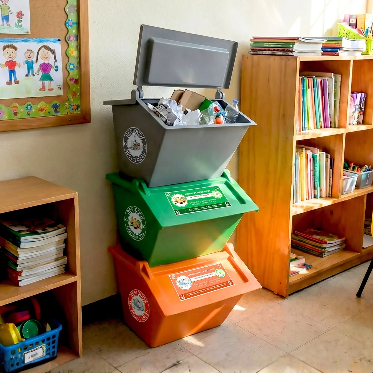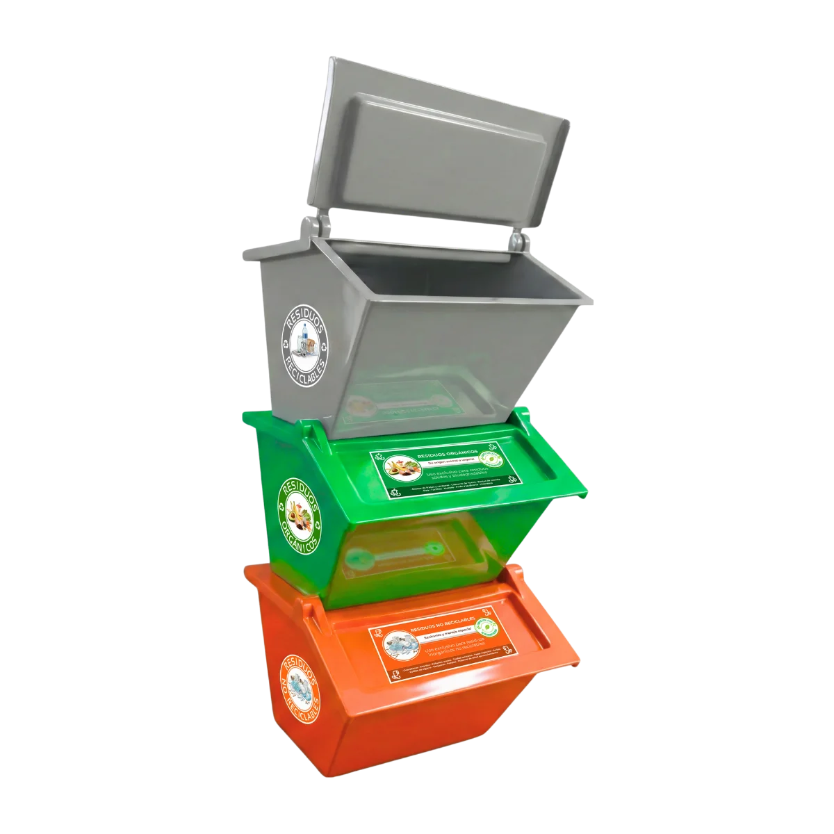 Esta cesta está pensada para entornos donde la funcionalidad es clave: oficinas, escuelas, comercios, consultorios o áreas administrativas. Su capacidad es ideal para el uso cotidiano, permitiendo recolectar residuos sin recurrir a contenedores grandes o estructuras complejas. Al apilar varias unidades, se crea una estación de separación eficiente que optimiza el espacio disponible y mejora la organización del entorno.