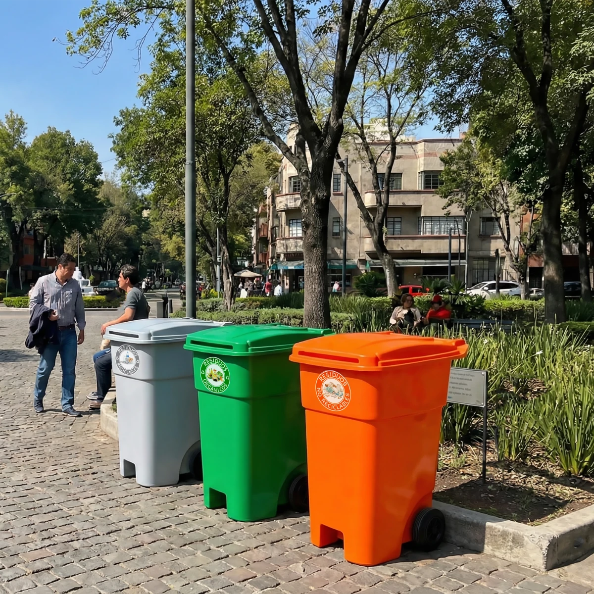 Su diseño con ruedas permite moverlo de un punto a otro sin necesidad de cargar peso ni interrumpir las actividades del entorno. Esto resulta especialmente útil en parques, plazas, eventos, centros educativos, áreas comunes o espacios abiertos donde la generación de residuos cambia a lo largo del día. El contenedor se acerca al lugar de uso y luego se traslada para su vaciado de forma sencilla.