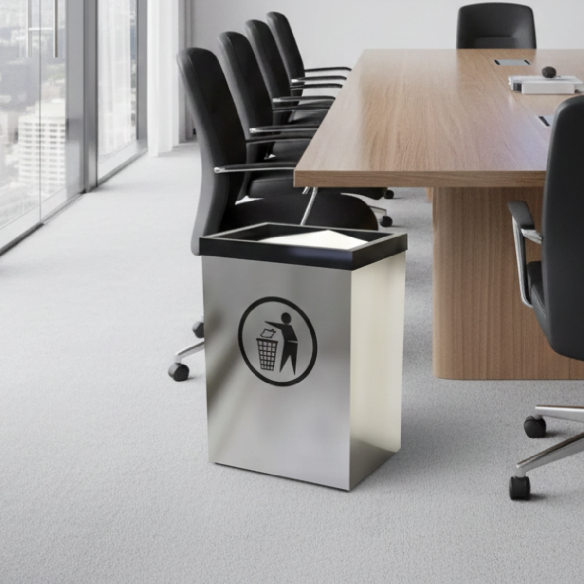 Mantén limpios los espacios con este contenedor, elegante y apto para oficinas, plazas comerciales, cines, etc.