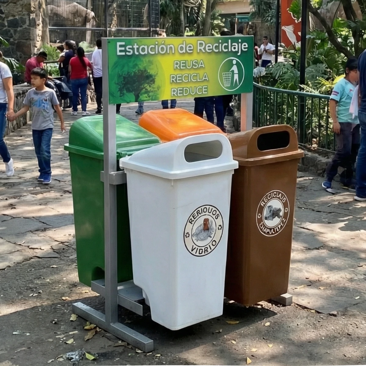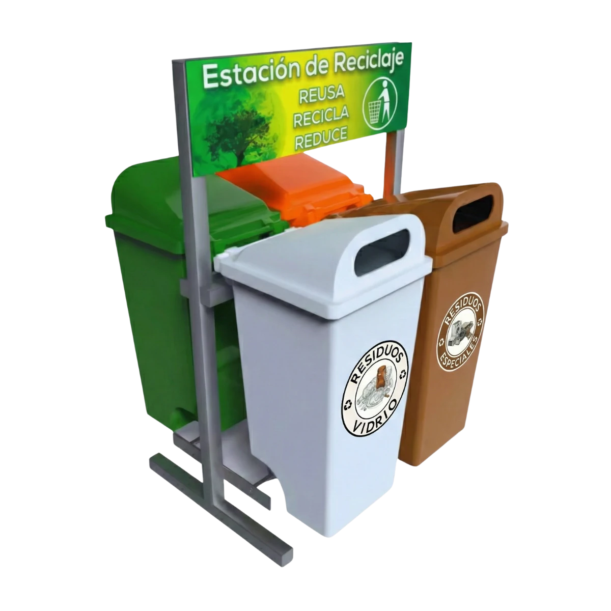 Transforma cualquier espacio en un punto clave para el reciclaje y la sostenibilidad con nuestra Estación de reciclaje ECOL-560-RT2, conformada por cuatro contenedores, y diseñada para combinar funcionalidad, durabilidad y estética. Ideal para parques, escuelas, estacionamientos y más, es la herramienta perfecta para fomentar la cultura del reciclaje en cualquier entorno.