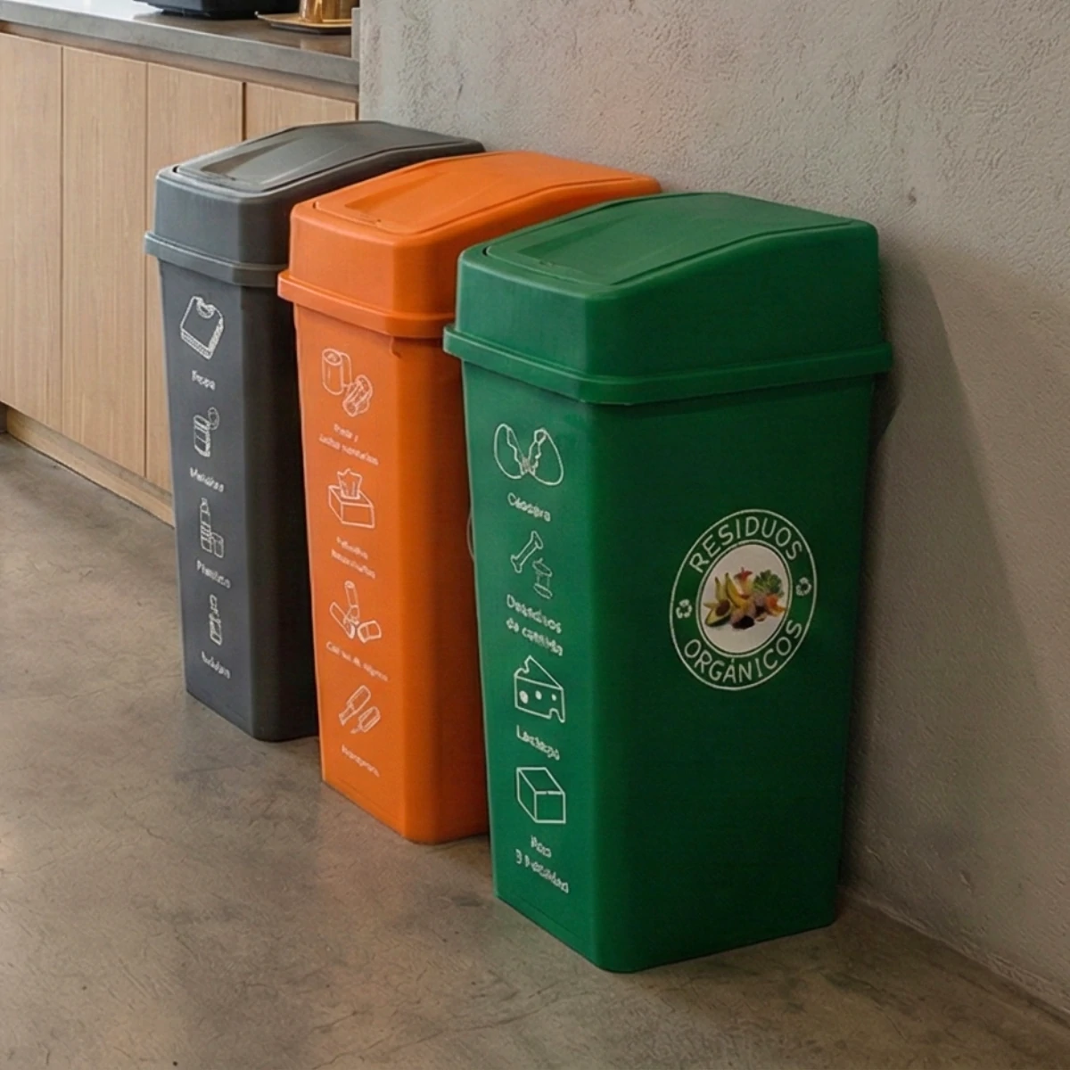 Asimismo, este modelo forma parte de un sistema de papeleras diseñado para trabajar en conjunto. De esta forma, la separación se integra de manera continua en la rutina diaria. Con ello, depositar los residuos correctamente se vuelve un hábito claro y consistente, sin generar confusión para los usuarios.